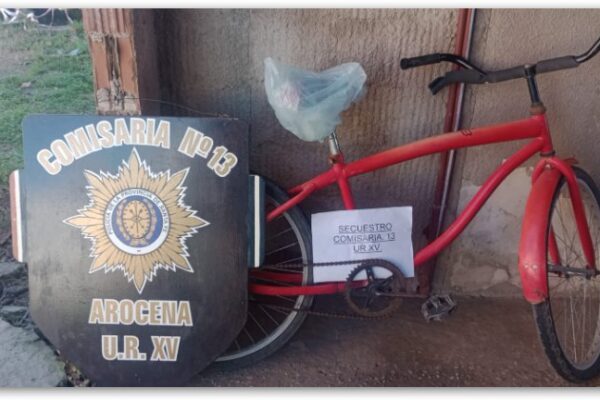 Arocena:se recupera una bicicleta hurtada.Una señora denuncio la faltante de la bicicleta de su sobrina de 14 años de edad,…