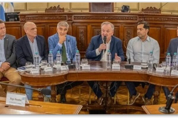 El gobernador Maximiliano Pullaro, acompañado por el ministro de Desarrollo Productivo de Santa Fe, Gustavo Puccini, presentó al canciller de…