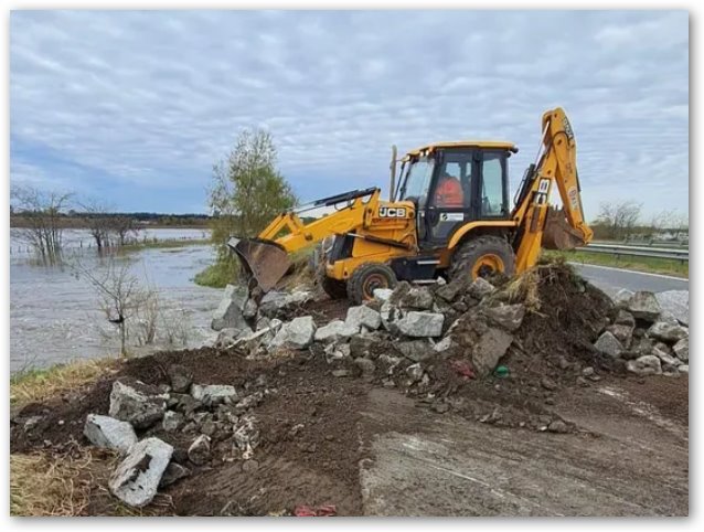 El equipo de trabajo que se instaló en la zona del cruce sobre el río llegó con camionadas de tierra y piedras para reacondicionar ese sector de la autopista. Mientras tanto, el agua sigue en un nivel muy alto como consecuencia de una serie de tormentas extraordinarias.