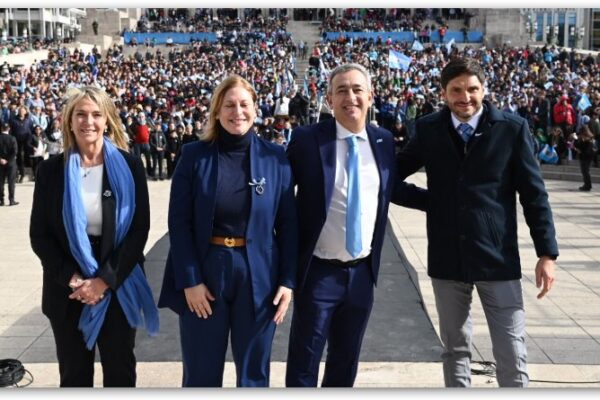 El gobernador Maximiliano Pullaro y el intendente de Rosario, Pablo Javkin, encabezaron el acto de Promesa de Lealtad a la…