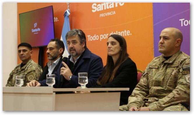 La conferencia se realizó en la Sala Walsh de la Sede de Gobierno en Rosario. Cococcioni estuvo acompañado por la subsecretaria de Inteligencia Criminal, Virginia Villar; el jefe de la Unidad Especial de Inteligencia, Maximiliano Bertolotti; y los jefes de las Tropas de Operaciones Especiales (TOE), Ariel Angelucci e Iván Huanco.