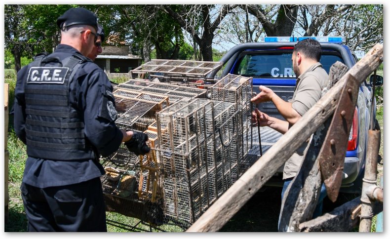 Durante la acción, personal policial intervino un domicilio deshabitado que presentaba una infraestructura precaria con dos grandes jaulones donde se encontraron más de 300 aves pertenecientes a 15 especies diferentes, entre las cuales se identificaron federales, boyeros, jilgueros, reina mora, pepiteros, monteritas, calandrias, cardenales copete rojo, cardenillas y urracas, entre otras. Los animales se hallaban en condiciones de hacinamiento y abandono. Se observó además la presencia de aves muertas y signos de desnutrición en algunas de las especies.