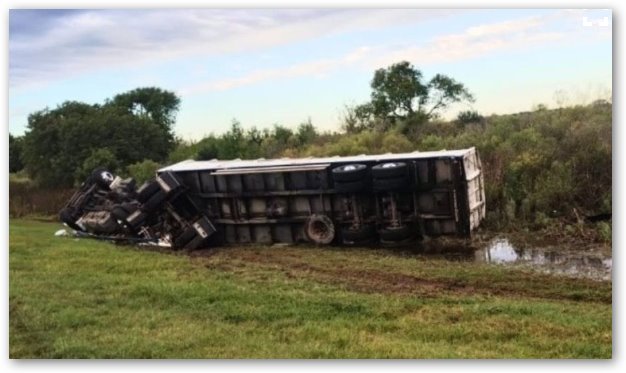 El hecho ocurrió alrededor de las 2.55, cuando personal policial fue comisionado por un accidente vial. Al llegar, encontraron el camión con acoplado volcado sobre la mano hacia Rosario.