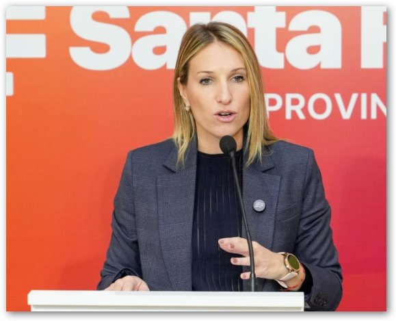 La funcionaria brindó este martes una conferencia de prensa en la que repasó distintos ejes de gestión del Gobierno de Santa Fe, con foco en la disminución de amenazas a escuelas, el avance de las notificaciones a responsables y la puesta en marcha de una aplicación de control parental.