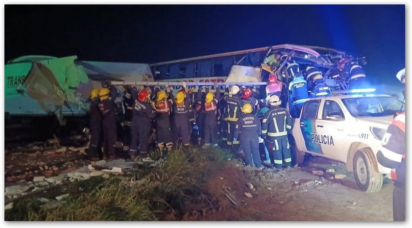Las consecuencias del impacto fueron devastadoras. El frente del colectivo quedó completamente destruido, al igual que la cabina del camión, lo que refuerza la hipótesis de que se trató de un choque frontal de gran violencia. Personal de Bomberos, Policía Vial y servicios de emergencia trabajaron durante horas en el lugar para rescatar a los heridos, algunos de los cuales quedaron atrapados entre los hierros retorcidos.