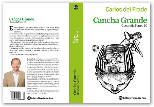 Además candidato a diputado nacional por el FAS en las próximas elecciones del 26 de octubre, del Frade tiene en su haber como investigador más de cien libros acerca de los entramados de los negocios ilegales de la provincia, sobre historia y derechos humanos, sobre la identidad de los barrios y de las ciudades de Santa Fe. En la última década fue sacando un tomo por año dentro de una saga que llamó “Geonarco” y de la cual Cancha grande, publicado por la editorial Fundación Ross, es el más reciente.