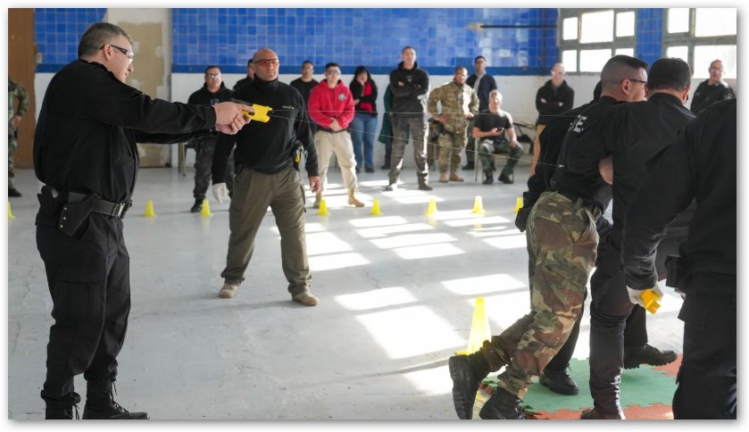 El funcionario agregó que “esta capacitación tiene una parte práctica en dos etapas, una donde se le dispara a silueta, se practica desenfundar el arma, se practica el cambio de armas entre el arma de fuego y el arma de menor letalidad. Y por último, ya se dispara a los instructores. Se le hace un disparo para que reciban el paso de la corriente eléctrica por su cuerpo y vivan la la experiencia de lo que es tener esta arma para generar responsabilidad y para tener conocimiento de los efectos que producen”.