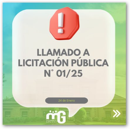 El municipio de la ciudad de Galvez, llama a licitación Publica N° 01 / 2025 hasta el dia 14 de febrero de 2025, hasta las 9 hs.- para la contratacion de mano de obra necesaria para la obra » PUESTA EN VALOR PARA EL AREA CENTRAL » .-