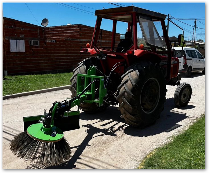 Este Jueves 4, en rueda de prensa, el Municipio presentó un nuevo implemento que, adosado a un tractor, realiza el barrido de las calles con cordón cuneta y estabilizado granular.