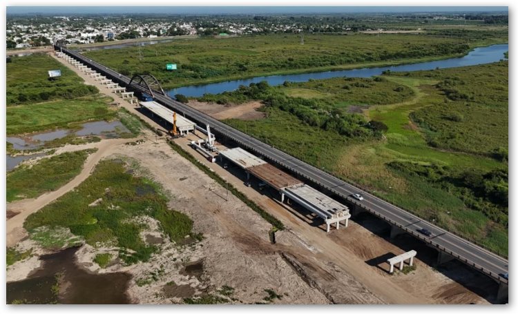 El ministro de Obras Públicas de la Provincia, Lisandro Enrico, destacó el progreso de la obra: “Ya tenemos ejecutado alrededor del 35 % del nuevo puente y ahora vamos a comenzar a instalar las vigas que se están produciendo en un obrador montado a pocos kilómetros del lugar”.