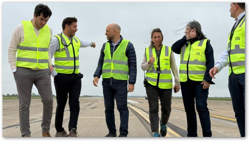 Acompañado por la secretaria de Transporte y Logística, Mónica Alvarado, el gerente general del AIR, Juan Pio Drovetta, y parte del directorio -Esteban Bretto y Pedro Giantenaso-, estuvieron junto al equipo de ingenieros que llevarán adelante la obra junto a la empresa Obring S.A.
