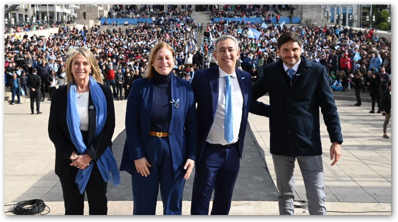 Por último, manifestó que “nosotros creemos en el crecimiento económico, en el fortalecimiento de la industria, en la generación de empleo, porque nuestro ADN nos marca exportar, generar valor agregado. En este momento, que la Bandera nos debe enarbolar a todos, debemos hablar de unidad, defensa, igualdad y libertad”.