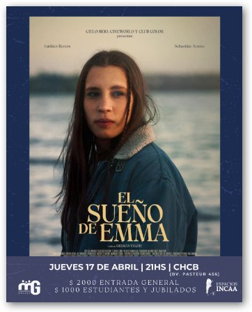 Como cada jueves, en en el espacio INCAA, que funciona en la CASA DE LA HISTORIA Y CULTURA DEL BICENTENARIO DE GALVEZ, se proyectara la película «EL SUEÑO DE EMMA»