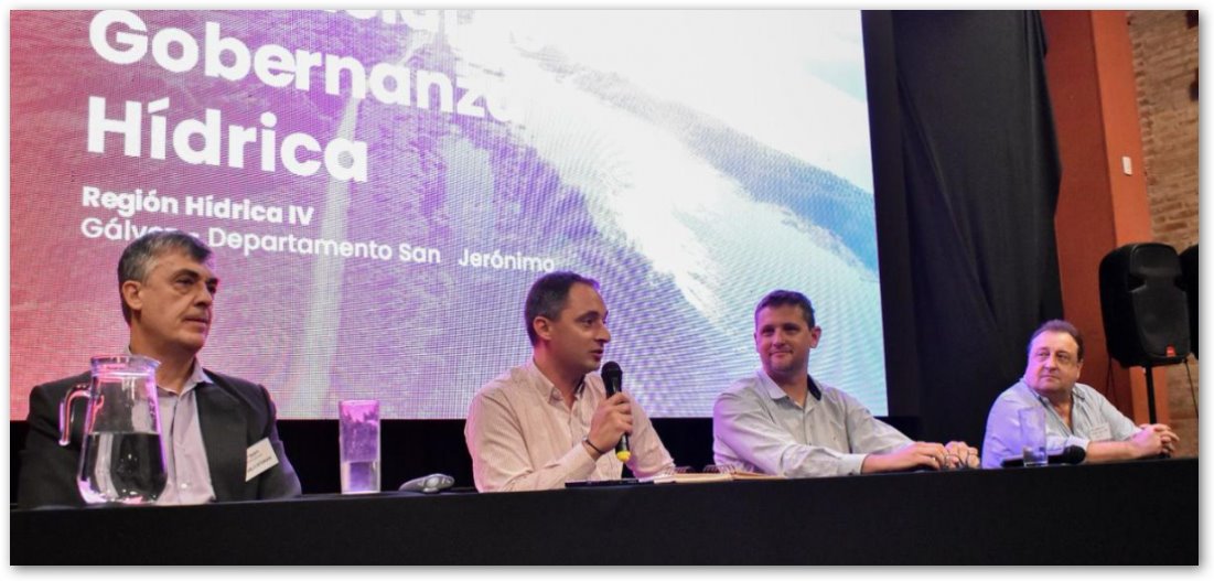 La tercera reunión de “Gobernanza Hídrica” tuvo lugar en Gálvez y estuvo encabezada por el secretario de Recursos Hídricos, Nicolás Mijich; el senador del departamento San Jerónimo, Leonardo Diana; el subsecretario de Obra y Gestión Territorial, Federico Sieber; el director Provincial de Planificación, Pablo Storani y el intendente, Mariano Busso. Allí se evaluaron acciones para avanzar hacia una gestión integrada de los recursos hídricos.