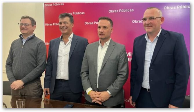 El acto formal se llevó a cabo junto al Ministro de Obras Públicas, Dr. Lisandro Enrico, el Senador, Dr. Leonardo Diana, el Secretario de Agua y Saneamiento, Leonel Marmiroli y el propio Alarcón que explicó los pasos dados.
