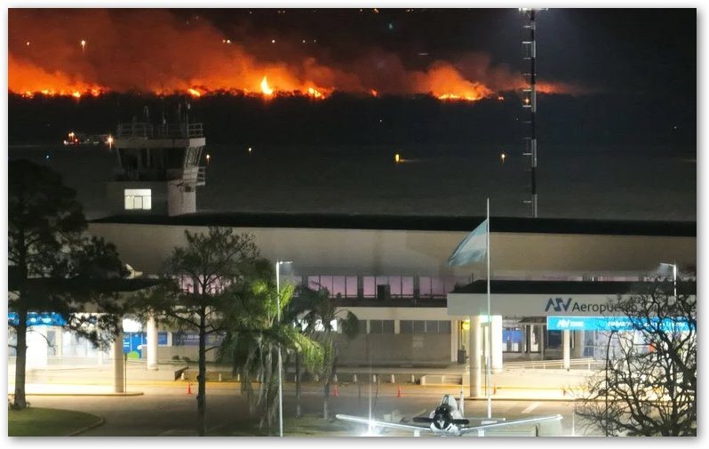 Sin embargo, la situación empeoró cuando un incendio de mayor magnitud estalló dentro del predio del aeropuerto, afectando directamente su operatividad.