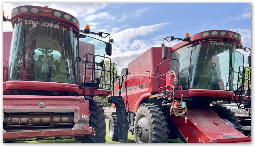 Posteriormente, en la zona rural del distrito Chovet, secuestraron un tanque de combustible de color rojo marca Belén (capacidad 4000 lt.) con 3000 lt. aproximadamente de combustible, con baulera y tanque de agua, un taller rodante color rojo marca Ombú, de 5 metros de largo por 2,10 de ancho con puertas laterales, con gran cantidad de herramientas y repuestos, una casilla Marca el Sol de 7,50 metros equipada con aire acondicionado, televisor, termo tanque, dos garrafas de 15 kg, cocina y 5 camas con sus respectivos colchones; una cosechadora marca Case de color rojo, Modelo N° 8120 LAA4WD, motor marca FPT165487, chasis marca Case modelo AÑO 2012, una cosechadora marca Case de color roja modelo N° 8120 LAA modelo 2012, dos plataforma marca Macdon de 40 pies de lona con sus respectivos carros porta plataforma y una camioneta pickup Toyota Hilux.