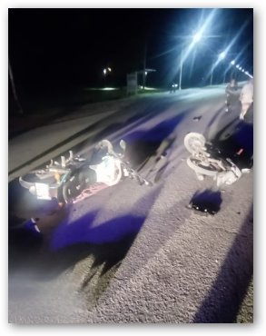 Personal policial es abocado Sobre Ruta Nacional 11, cerca del frigorífico, donde produjo un accidente de tránsito. Allí se logró divisar dos motocicletas caídas en el asfalto y junto a ellas dos mujeres ,una en estado inconsciente con varias heridas en su pierna y rostro y la otra pidiendo a gritos asistencia médica. Un hombre de 21 años, de esta localidad y que circulaba por dicha ruta, manifiesta que al querer pasar a un vehículo, impactó con otra moto. Es en ese momento que se produjo el accidente. En relación a las femeninas, tienen 25 años y ambas son domiciliadas en este medio. Seguidamente se hizo presente el Samco local para trasladar a una de ellas, la más afectada al hospital Granaderos a Caballo de San Lorenzo por sus lesiones de carácter graves y el resto de los autores fueron derivados por unidad móvil de Barrancas, que siendo examinados por médico en turno constató lesiones de carácter leves. Se prosigue con las diligencias de rigor.
