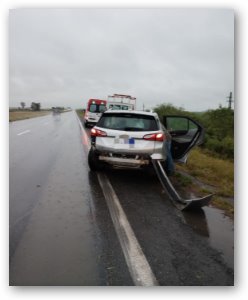 Personal de Comisaria Monje,en colaboración con Comisaria 4ta de Maciel, se presentaron en km 60 de autopista, siendo las 09:10horas,y por razones que se intentara n establecer, se avista que un vehículo chevrolet equinox, que al parecer al pasar por espejo de agua, se desestabiliza ey pierde el control, colisionando con guardarraíl, sin dar vuelco,ni obstruyendo la calzada, el conductor hombre de 60 años aproximadamente,viajaba con su hija de 15 años, no fue su deseo ser atendido por facultativo.