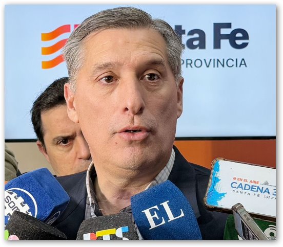 Esta mañana, el ministro de Economía, Pablo Olivares, brindó una conferencia de prensa en la que se refirió a la sanción, por parte de la Legislatura santafesina, que habilita al Poder Ejecutivo provincial a tomar créditos por 1.150 millones de dólares para el financiamiento de obra pública.