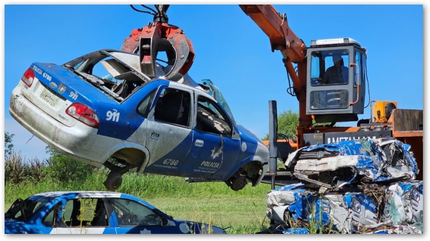 Provincia dio inició a la compactación de los vehículos en desuso, o ya sin valor para la Justicia, que se encuentran en el depósito del destacamento Policial N° 2, U.R. XVI de Angeloni, en el departamento San Justo.