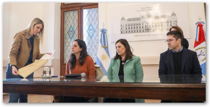 El acto que se realizó en el Salón Blanco de Casa de Gobierno, en la ciudad de Santa Fe, contó con la participación de las secretarias de Coordinación Técnica y Administración Financiera del Ministerio de Justicia y Seguridad de la Provincia, Georgina Orciani; de Asuntos Penales, Lucía Masneri Calderari; y de Gestión Institucional, Virginia Coudannes; junto al subsecretario de Tecnología y Equipamiento, Armando Faraoni; entre otros.