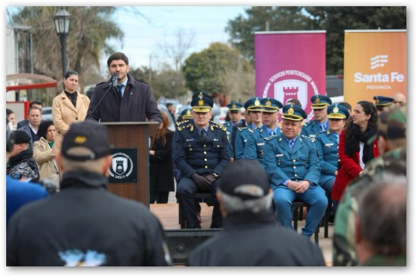 A su turno, el ministro de Justicia y Seguridad, Pablo Cococcioni, expresó el agradecimiento a los trabajadores del sector penitenciario “no solo por los que están haciendo ahora por su pueblo, sino por lo que han hecho y por lo que han acompañado nuestra nuestra mirada política desde hace mucho tiempo”. Luego se refirió al programa integral de Justicia y Seguridad que tiene la Provincia: “Incluye una mirada muy clara sobre la Policía y sobre el Servicio Penitenciario, por eso hemos iniciado nuestra gestión con un ambicioso plan dentro del cual una de las primeras leyes que logramos que se apruebe fue la nueva Ley Orgánica del Servicio Penitenciario”. “Esta ley -afirmó- nos va a permitir dar pasos más firmes en la profesionalización de la fuerza” y contó que el programa define “la política penitenciaria como una política de Estado”.