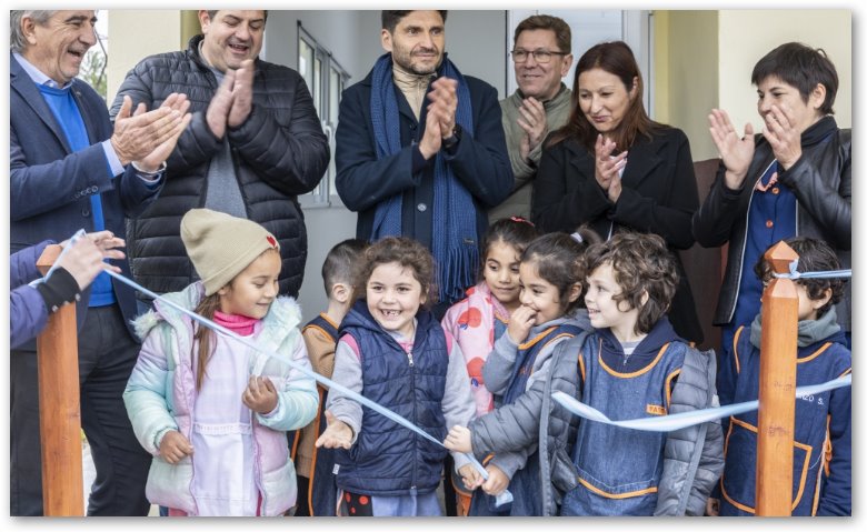 En Marcelino Escalada, inauguró un aula en la Escuela Primaria N.º 6138 “María Victoria Elguezábal”, en el marco del programa “1000 Aulas” del Ministerio de Educación. También visitó la recuperación del histórico edificio del ex hotel de la Cooperativa Tambera.