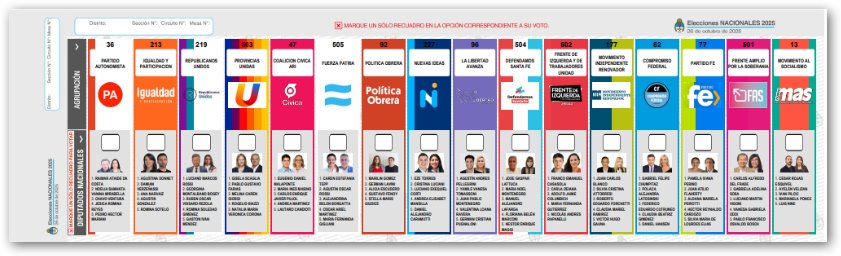 Además, detalló que “en este diseño de boleta única figuran los 5 primeros titulares”, y que a diferencia de la boleta única que los santafesinos ya utilizamos en las elecciones locales, “estas tienen un formato apaisado, en donde tenemos cada una de las categorías en columnas y de manera horizontal vamos a encontrar los partidos y alianzas. La similitud es la dinámica, de la autoridad de mesa entregando la boleta”.