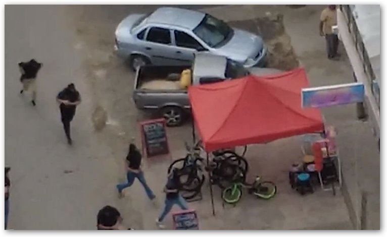 Las imágenes del drone registran cuando los dos hombres salían del inmueble con actitud sospechosa, mientras se producía la llegada de fuerzas policiales de la provincia de Santa Fe para poner en marcha el operativo en la zona de Floduardo Grandoli al 3100, ciudad de Rosario.