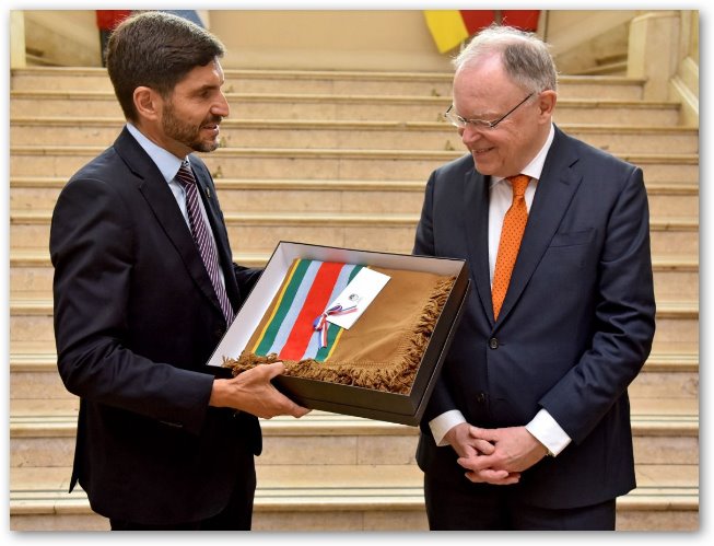 El gobernador Maximiliano Pullaro y el ministro presidente de Baja Sajonia, Stephan Weil, firmaron este viernes una Declaración de Colaboración entre la provincia y ese Estado de la República Federal de Alemania con el propósito de profundizar relaciones y promover intercambios en diversos ámbitos.“El objetivo de la asociación es intensificar la cooperación en las áreas de negocios, comercio, agricultura, energía, educación e innovación, con el objetivo de promover un desarrollo sostenible y orientado al futuro en ambas regiones”, declara el acuerdo firmado en la sede de Gobierno provincial en Rosario.Al respecto, el gobernador valoró la visita de las autoridades alemanas, y señaló su entusiasmo porque “esto pueda ser una relación que se continúe construyendo y nos pueda permitir poner en debate las cosas más importantes que hoy se están dando en el mundo como la paz, como el fortalecimiento de los sistemas democráticos; pero también la importancia y el impacto que tiene el cambio climático y la actividad del ambiente en el mundo, que tenemos que empezar a trabajarlo fuertemente los diferentes estados”. Pullaro deseó “que esta relación la podamos fortalecer y sostener en el tiempo, y por supuesto tener muchos intercambios de colaboración”. “Nuestra provincia, además de ser campo, de ser industria y de ser también los puertos por los cuales sale la exportación de la República Argentina, es también las universidades públicas, somos la industria del software, y estamos trabajando muchísimo para que nuestra provincia sea capaz de desarrollar en esas áreas”, agregó.Finalmente, el primer mandatario santafesino calificó como “fructífera la visita”, y manifestó el deseo de que la provincia y el Estado alemán de Baja Sajonia continúen con vínculos “muy sólidos para que en el futuro podamos tener una potencia y lazos que las abracen y les permitan crecer hasta los lugares que soñamos”. Hoja de ruta para el futuroEl secretario de Relaciones Internacionales de Santa Fe, Claudio Díaz, resaltó el acto de firma “por la propia importancia que están cobrando los entes subnacionales como la provincia y como los estados federales de Alemania en las relaciones internacionales actuales, en el comercio, en la producción, en la interacción en un momento donde el sistema internacional también está pasando por momentos de mucha zozobra”.Manifestó también que “esta Declaración no es solamente un mero acto protocolar, sino que lo más importante es la hoja de ruta que va a quedar a futuro con muchos temas en común que tenemos entre ambos. En primer lugar, valores que compartimos que tienen que ver con la paz, con la democracia con lo que hoy se denomina geopolíticamente amigos en los valores compartidos. Y luego una serie de cuestiones que tienen que ver con la posibilidad de intercambios en ferias, en ciencia, en tecnología, en las posibilidades que se abren para las cuestiones agrícolas”. E indicó que, de esta manera, se inicia “un camino de cooperación, fundamentalmente de cooperación técnica, donde mucho tenemos que aprender y donde mucho también puede la provincia de Santa Fe brindar en estos aspectos como comercio, agro, ciencia, tecnología, en cuestiones climáticas, en energía”.Principales puntosEntre los principales puntos de la Declaración de Colaboración entre la provincia de Santa Fe y el Estado alemán de Baja Sajonia tienen que ver con:* Intensificar sus relaciones comerciales y ampliar la cooperación económica; promover la inversión y ampliar los flujos comerciales, particularmente en lo que respecta al acuerdo comercial UE-Mercosur; apoyar a empresas mediante viajes de delegaciones, eventos de networking y participación en ferias internacionales; apoyo especial a las pequeñas y medianas empresas para mejorar su competitividad y su capacidad de innovación.* Intensificar su cooperación en prácticas de cultivo sostenibles, tecnologías agrícolas modernas y técnicas innovadoras de procesamiento de alimentos.* La protección del clima, la expansión de las energías renovables y el comercio de fuentes de energía climáticamente neutrales.* Desarrollar programas conjuntos de formación para promover la movilidad laboral y abordar los desafíos que plantean el cambio tecnológico y la escasez de trabajadores calificados.* Apoyar programas que promuevan el intercambio y el entendimiento mutuo entre culturas, en particular proyectos para jóvenes, aprendices y estudiantes.Audio: PullaroVideo: Pullaro | |
