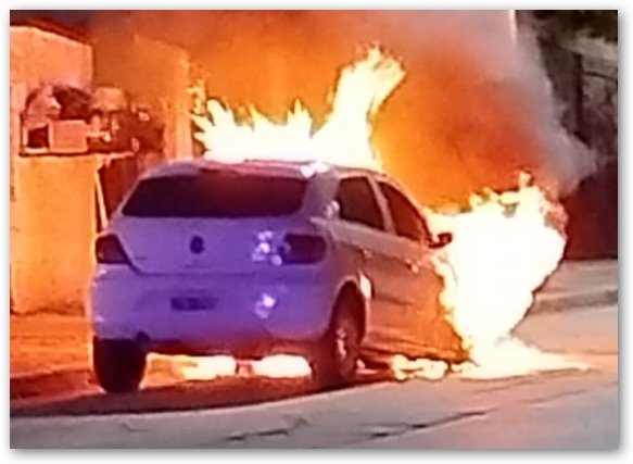 Inmediatamente llamaron a los Bomberos Voluntarios que acudieron y sofocaron el fuego pero igualmente el VW Gol sufrió daños importantes.