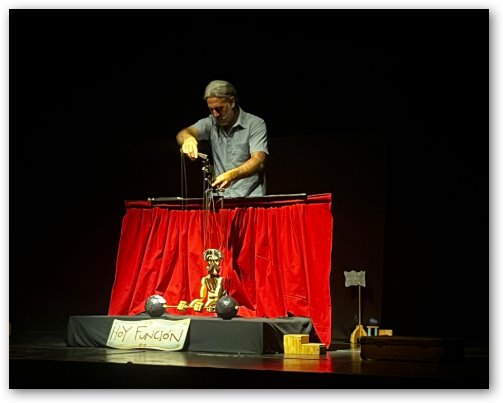 El espectáculo de marionetas de hilo combinó música, poesía y teatro, ofreciendo una puesta en escena que cautivó tanto a niños como a adultos. La función contó con una destacada participación del público, que acompañó con entusiasmo cada momento de la propuesta artística.