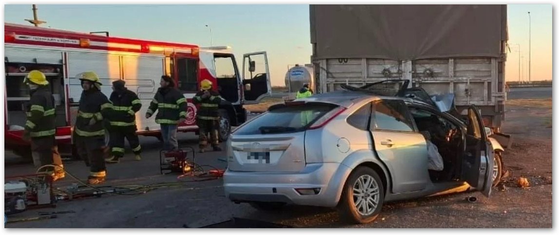 Eran alrededor de las 7.15 cuando un estruendo seco quebró la quietud. Según los primeros indicios, un Ford Focus que se desplazaba de sur a norte por Ruta 10 no habría disminuido la velocidad al ingresar a la rotonda. En una secuencia que duró apenas segundos, el vehículo atravesó la intersección y embistió con violencia a un camión Volkswagen con acoplado que estaba detenido sobre el cantero central.