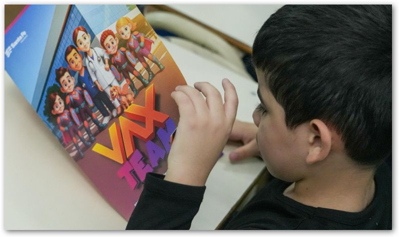 La estrategia interministerial Vax Team, orientada a recuperar las coberturas de vacunación en edad escolar, llegó este martes a la Escuela Gregoria Pérez de Denis, en la ciudad de Santa Fe. A través de esta iniciativa, el Gobierno Provincial busca alcanzar a más de 400.000 niños y niñas de entre 4 y 11 años, con el objetivo de controlar los carnets de vacunación y concientizar sobre su importancia. La propuesta combina una serie animada y un álbum de figuritas como recursos pedagógicos para estimular que los chicos completen el calendario obligatorio.